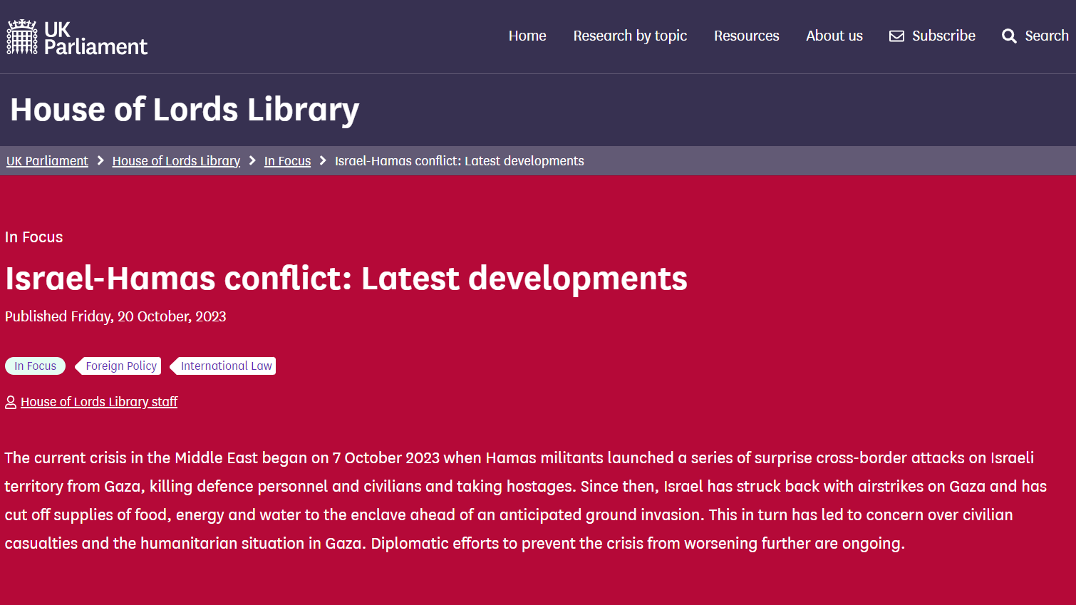 Overview of the latest Developments in the Israeli-Hamas conflict